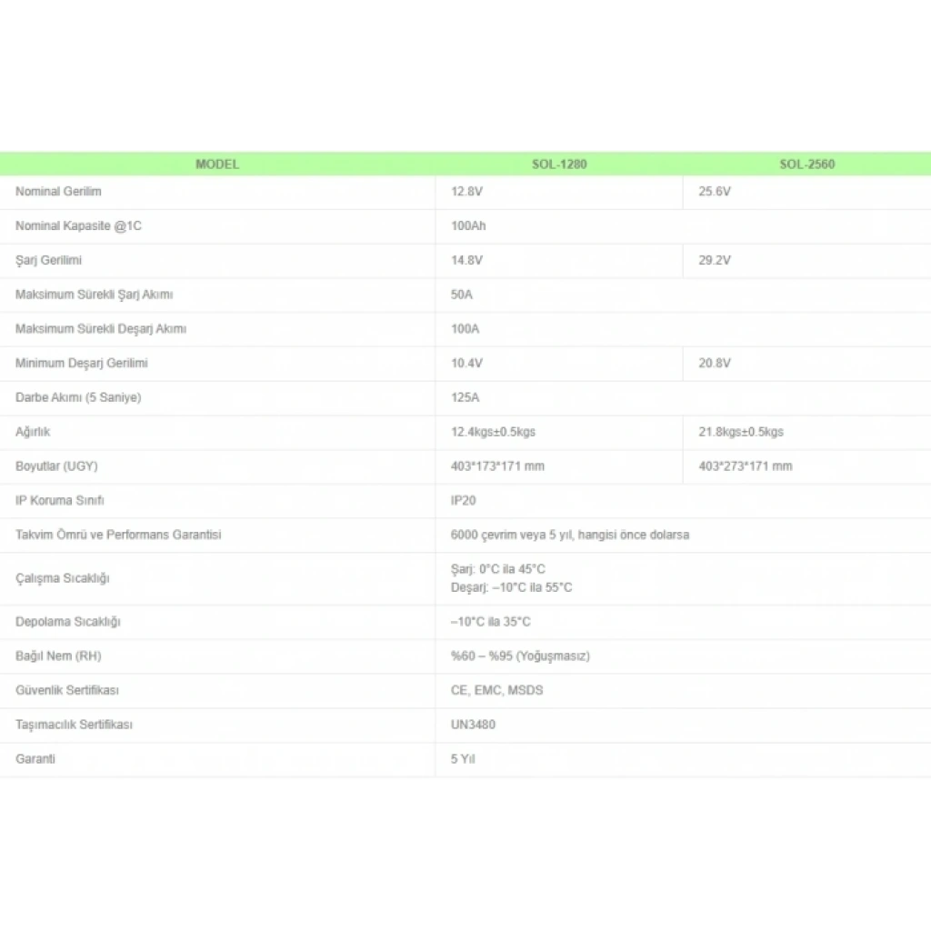 Teknik Özellikler – Solinved Smart LiFePO4 Akü Serisi