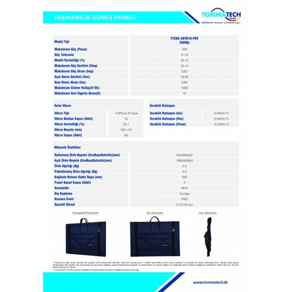 TommaTech 150W Katlanabilir Güneş Paneli