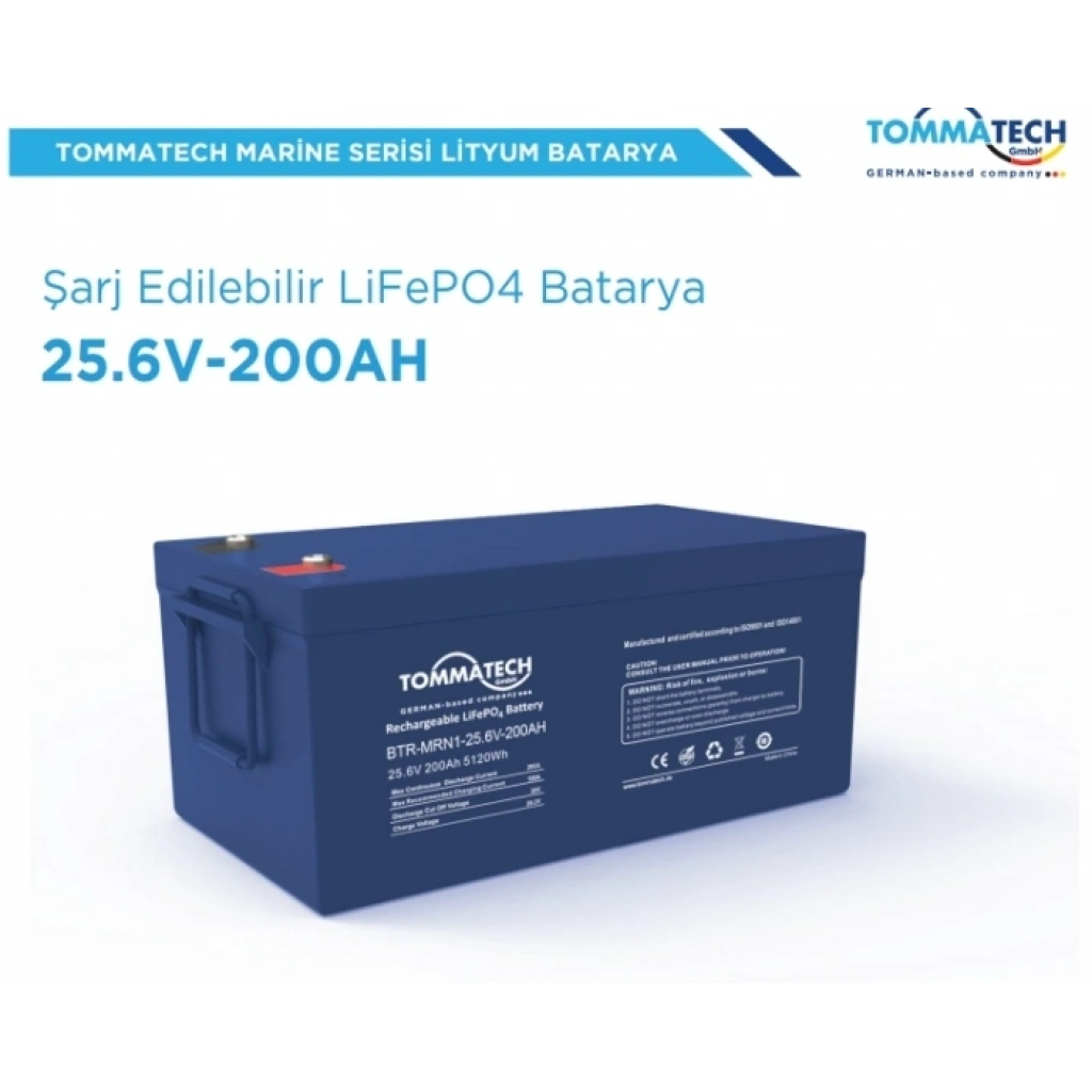 Tommatech Marine ABS Kasa Batarya 12.8V 200AH LFP Lityum Batarya