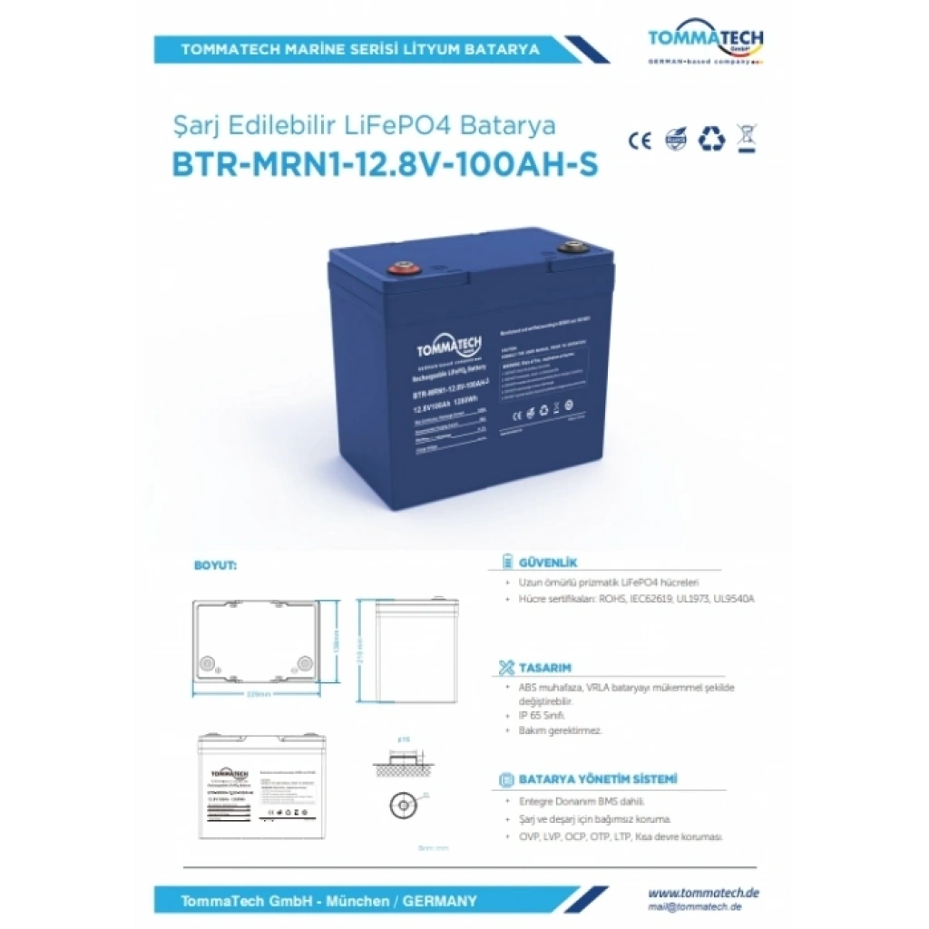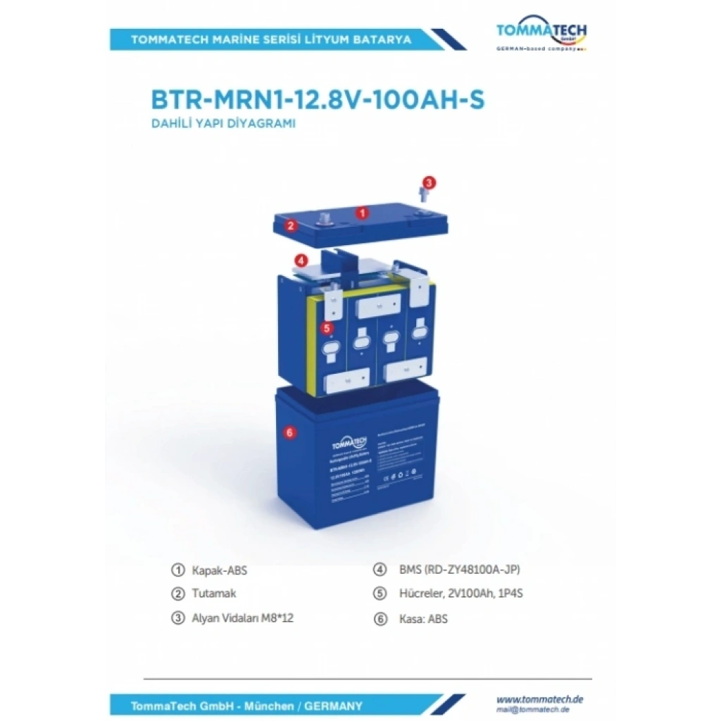 Tommatech Marine ABS Kasa Batarya 12.8V 100Ah LFP Lityum Batarya