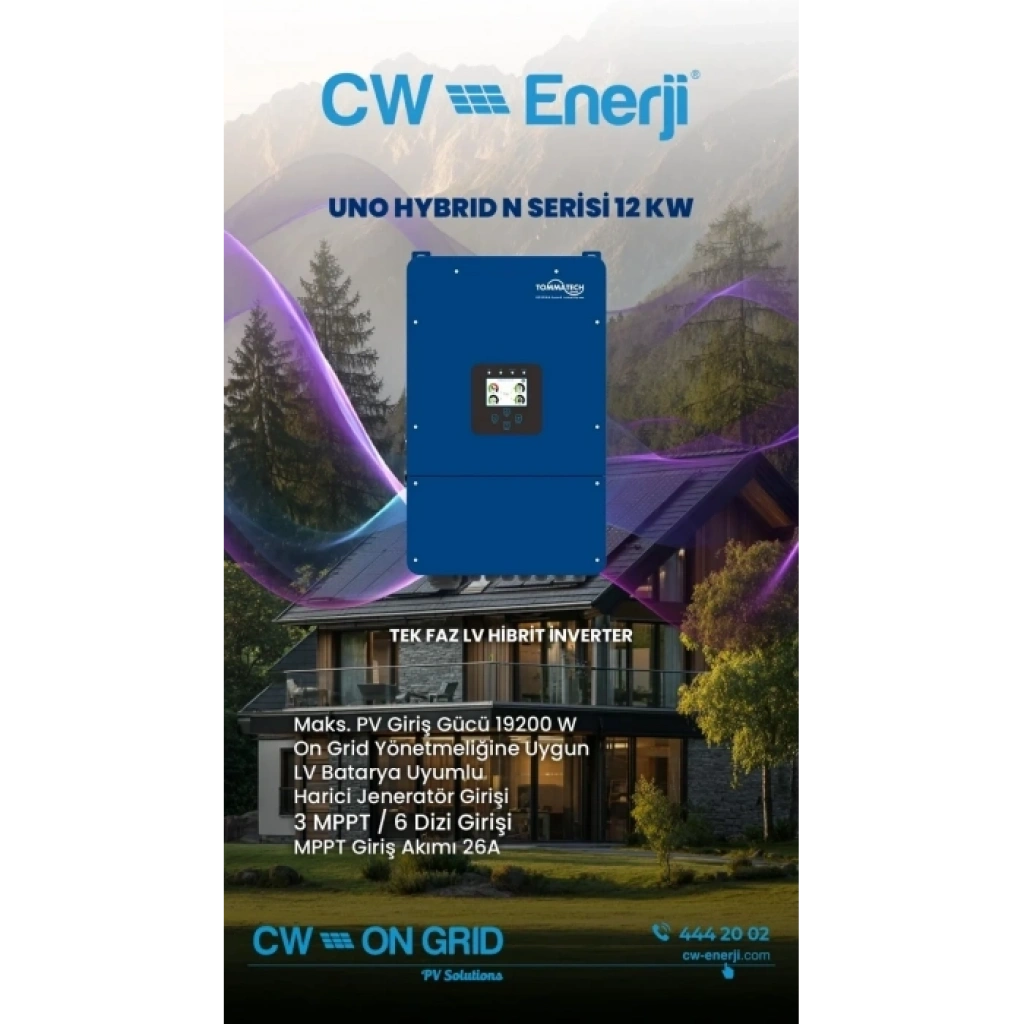 TommaTech Uno Hybrid N 12.0 kW Tek Faz Hibrit İnverter