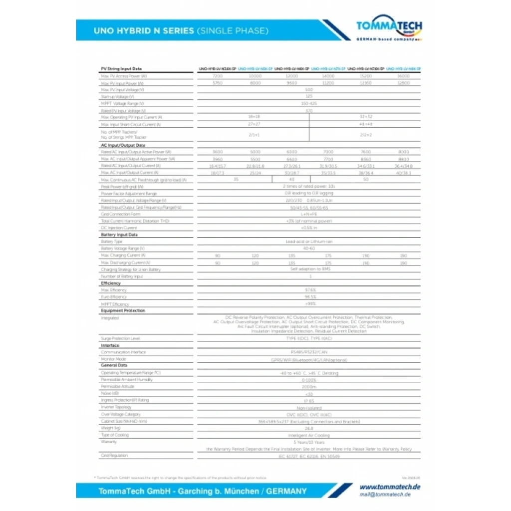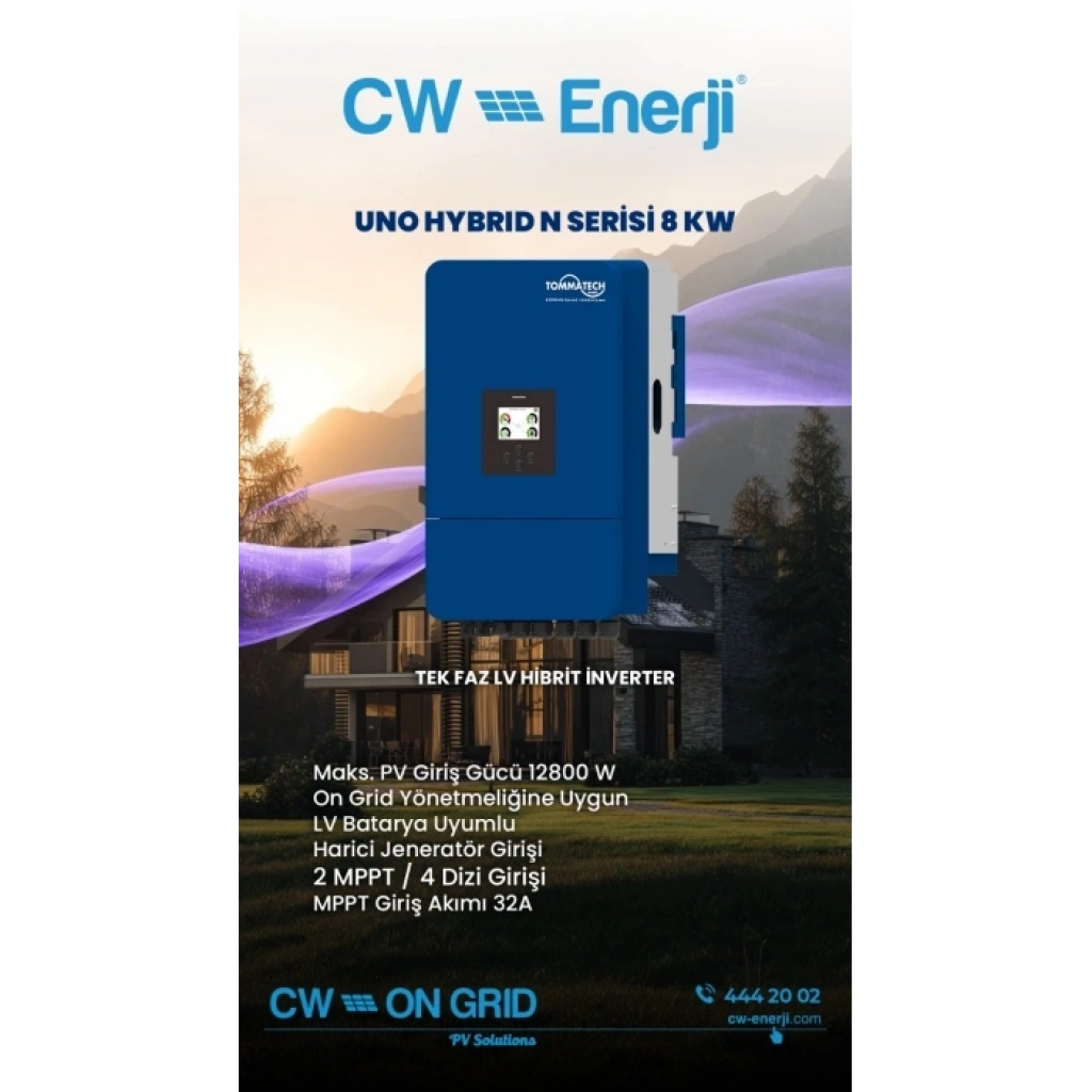 TommaTech Uno N Serisi 8 kW LV Hibrit İnverter – Güçlü, Esnek ve Güvenilir Hibrit Çözüm